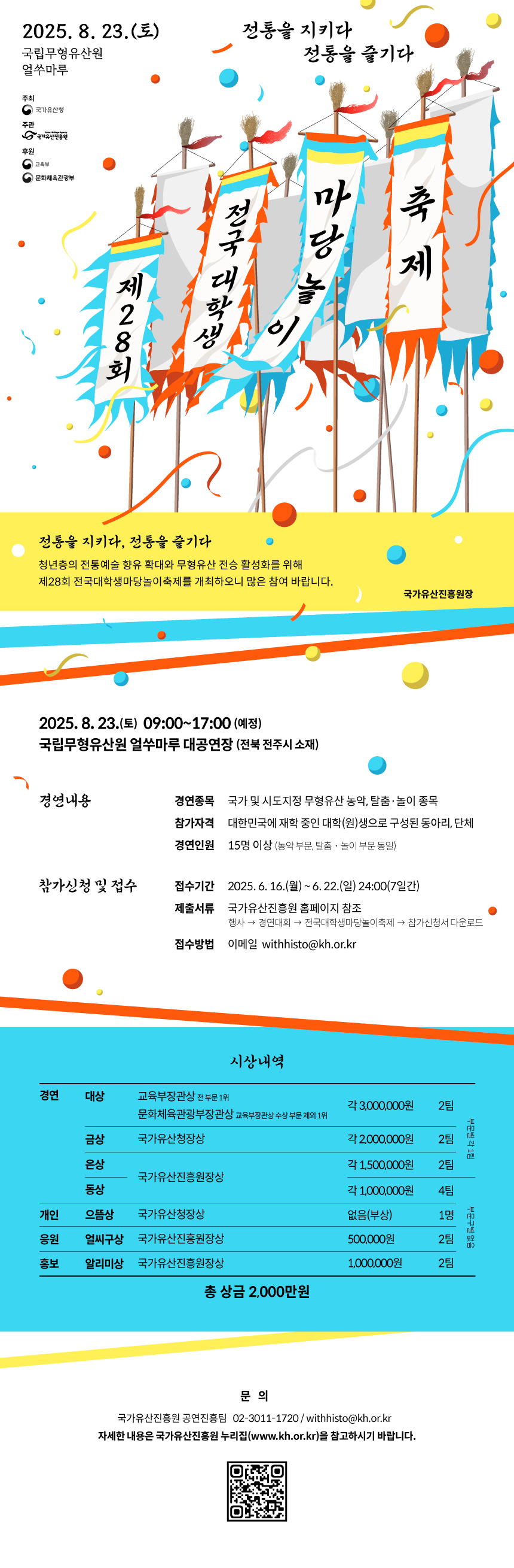 (국가유산진흥원) 2025년 제28회 전국대학생마당놀이축제 경연대회 개최 안내