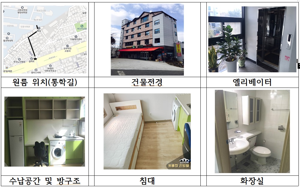 [신축 원룸] 전북대 강의실이 한눈에 보이는 원룸 / 백제대로 변(길마트 건물)/ “ 귀가길 안심”위치 / 햇빛 잘 드는 시야가 확 트인, 남향원룸/
