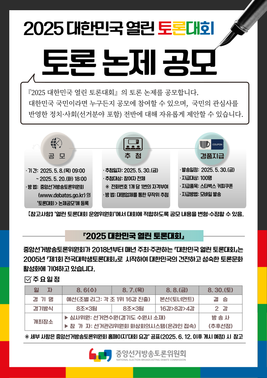 (중앙선거방송토론위원회) 『2025 대한민국 열린 토론대회』 논제 공모전 개최 안내