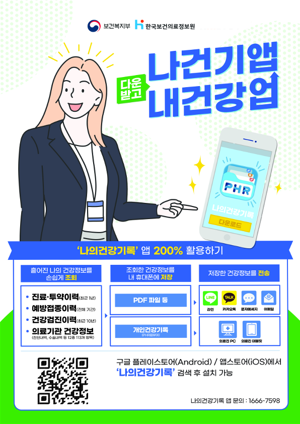 한국보건의료정보원에서 대국민 서비스 앱인 나의건강기록 앱을 운영하고 있습니다. 많은 참여 바랍니다.