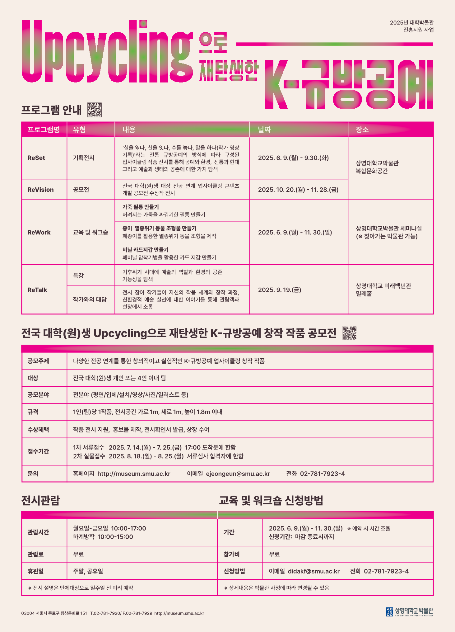 (상명대학교) 상명대학교박물관 2025년 「대학박물관 진흥지원」 사업 공모전 안내