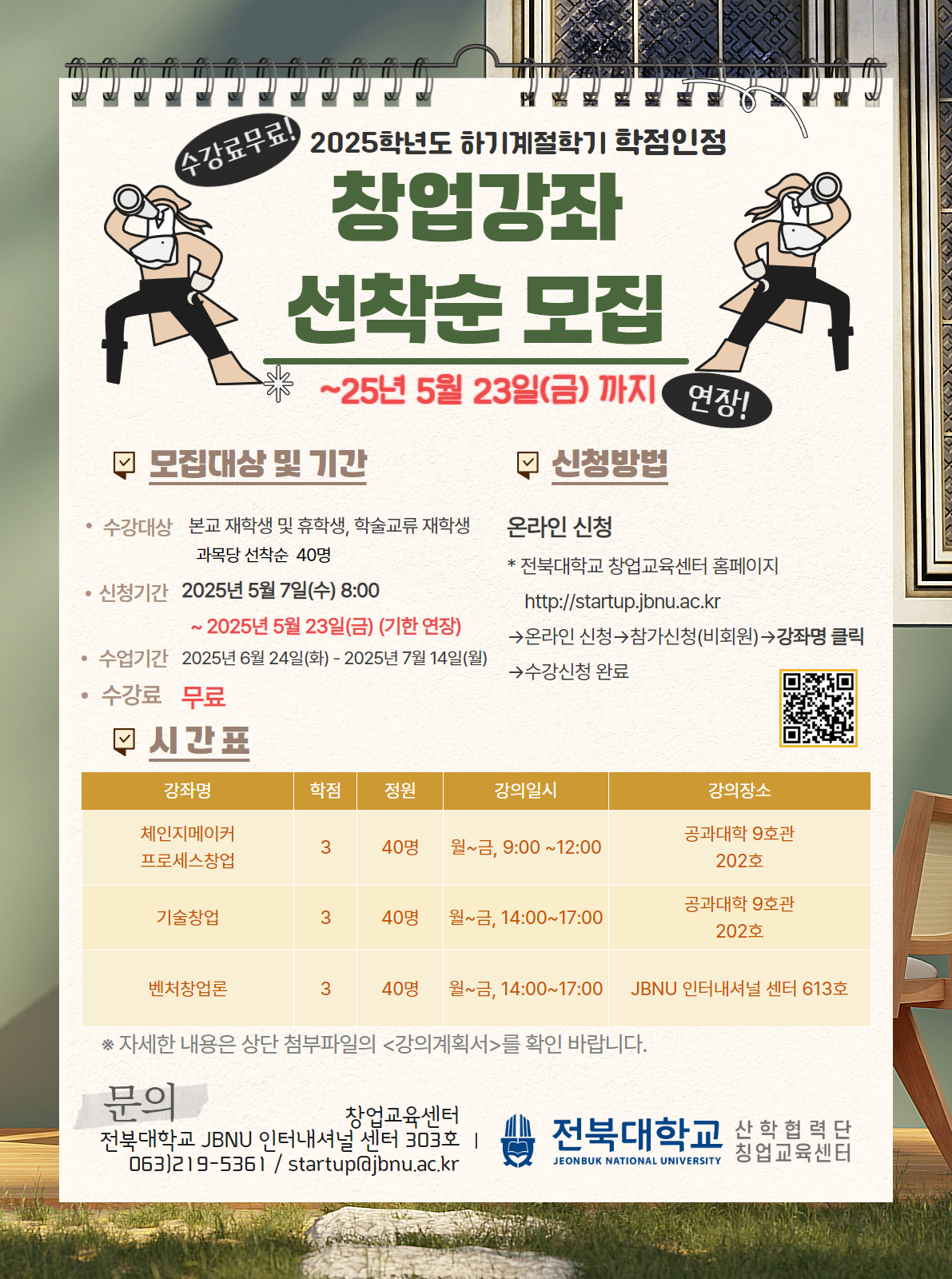 [창업교육센터] 2025학년도 하기계절학기 창업강좌 수강생모집(5/7~5/23)(연장)