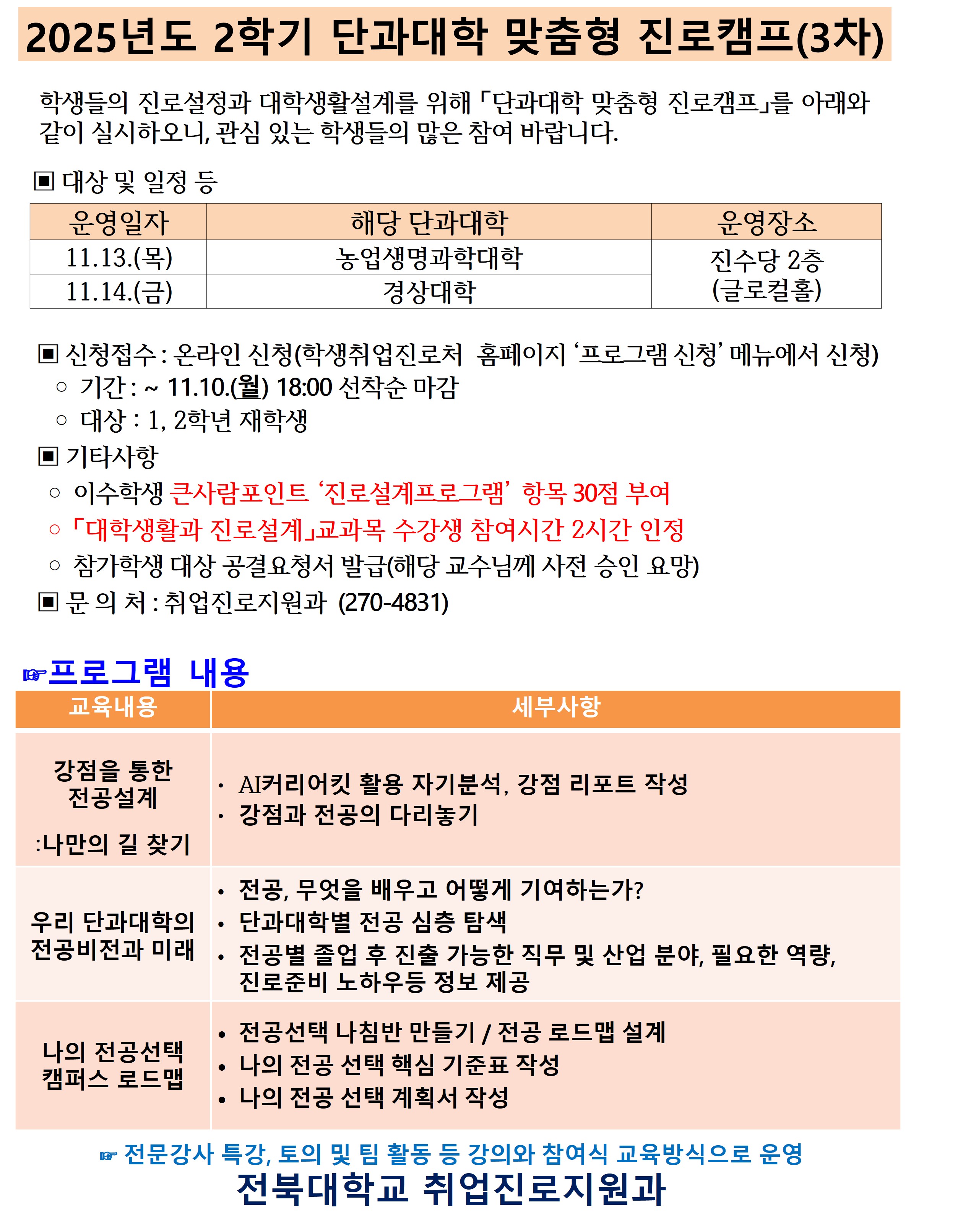 2025년도 2학기 단과대학 맞춤형 진로캠프(3차) 포스터1.jpg (258.8KB)
