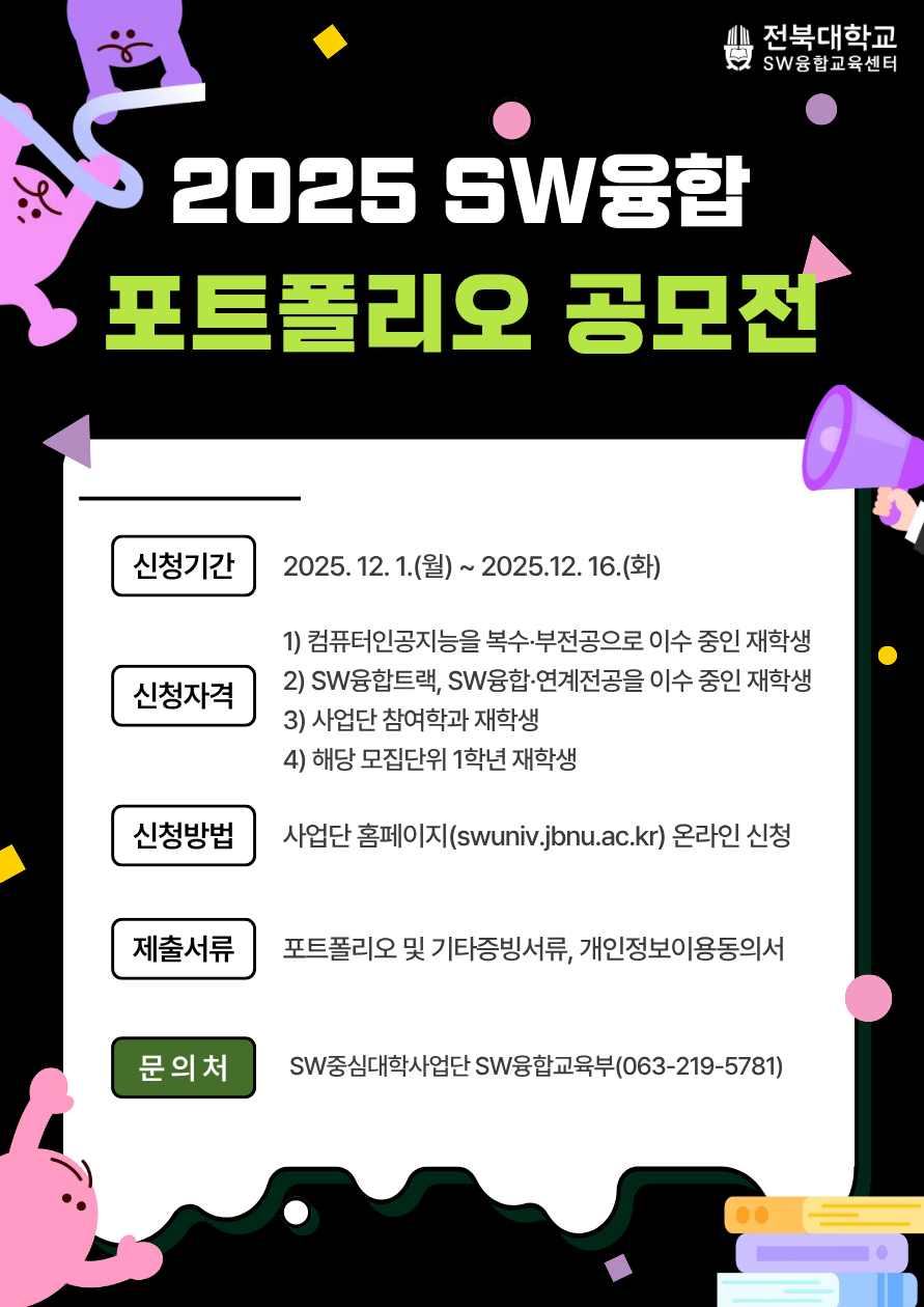 [SW중심대학사업단] 2025 SW융합 포트폴리오 공모전 안내 (접수기한: ~12.16.(화))