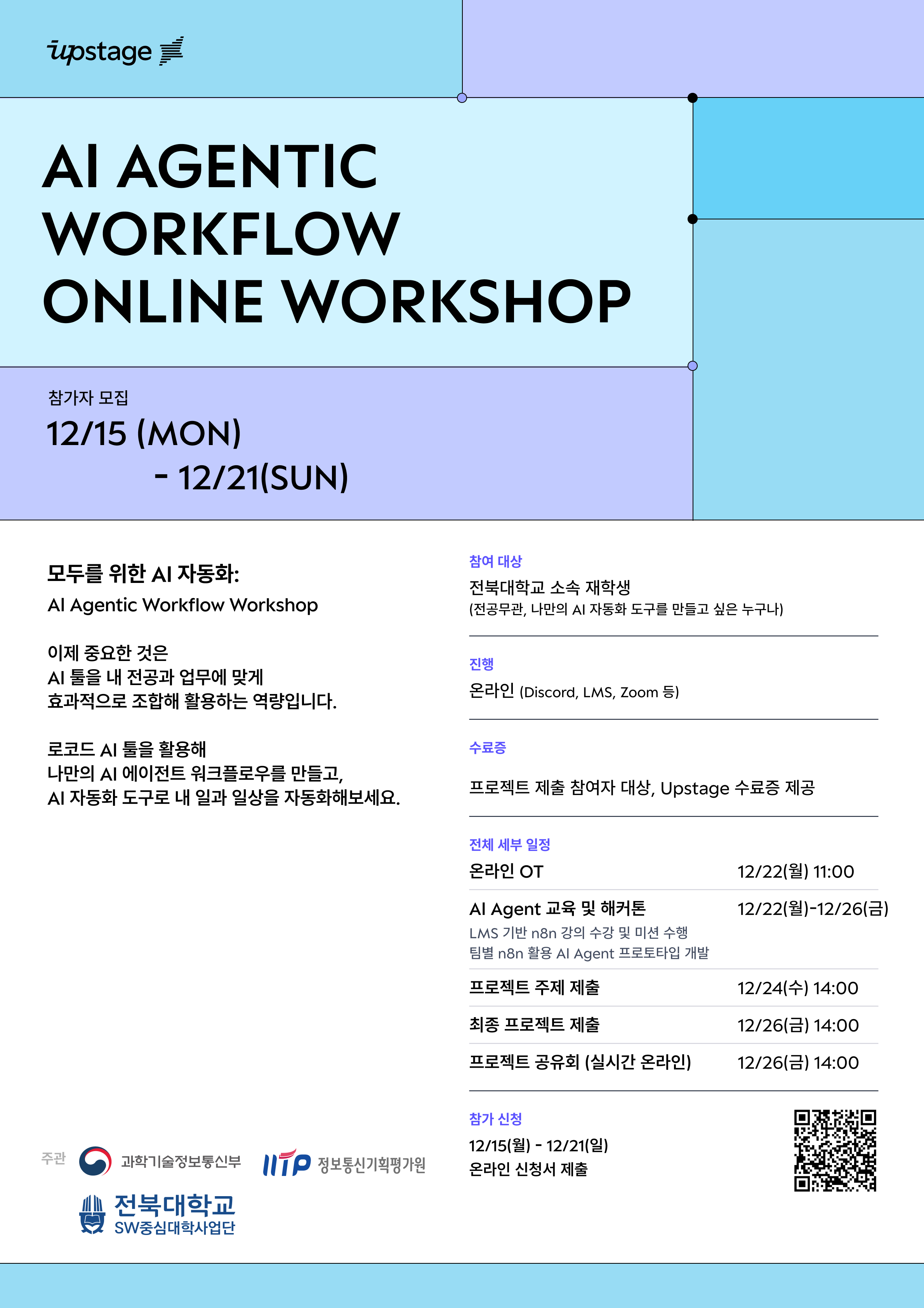 Upstage와 함께하는 『JBNU×Upstage AI Agentic Workflow Online Workshop』